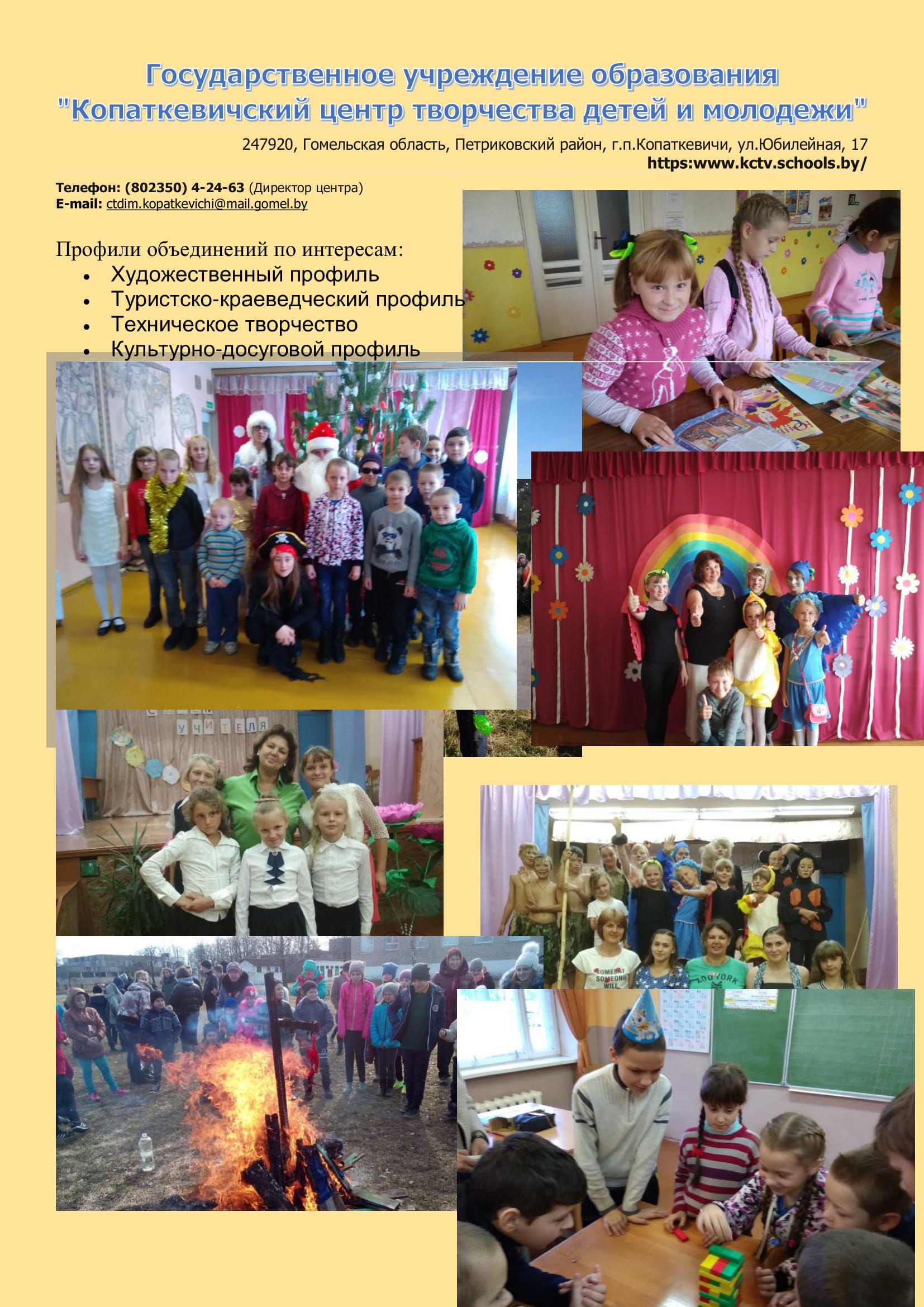 | Государственное учреждение образования «Копаткевичский центр творчества детей и молодежи» | ||