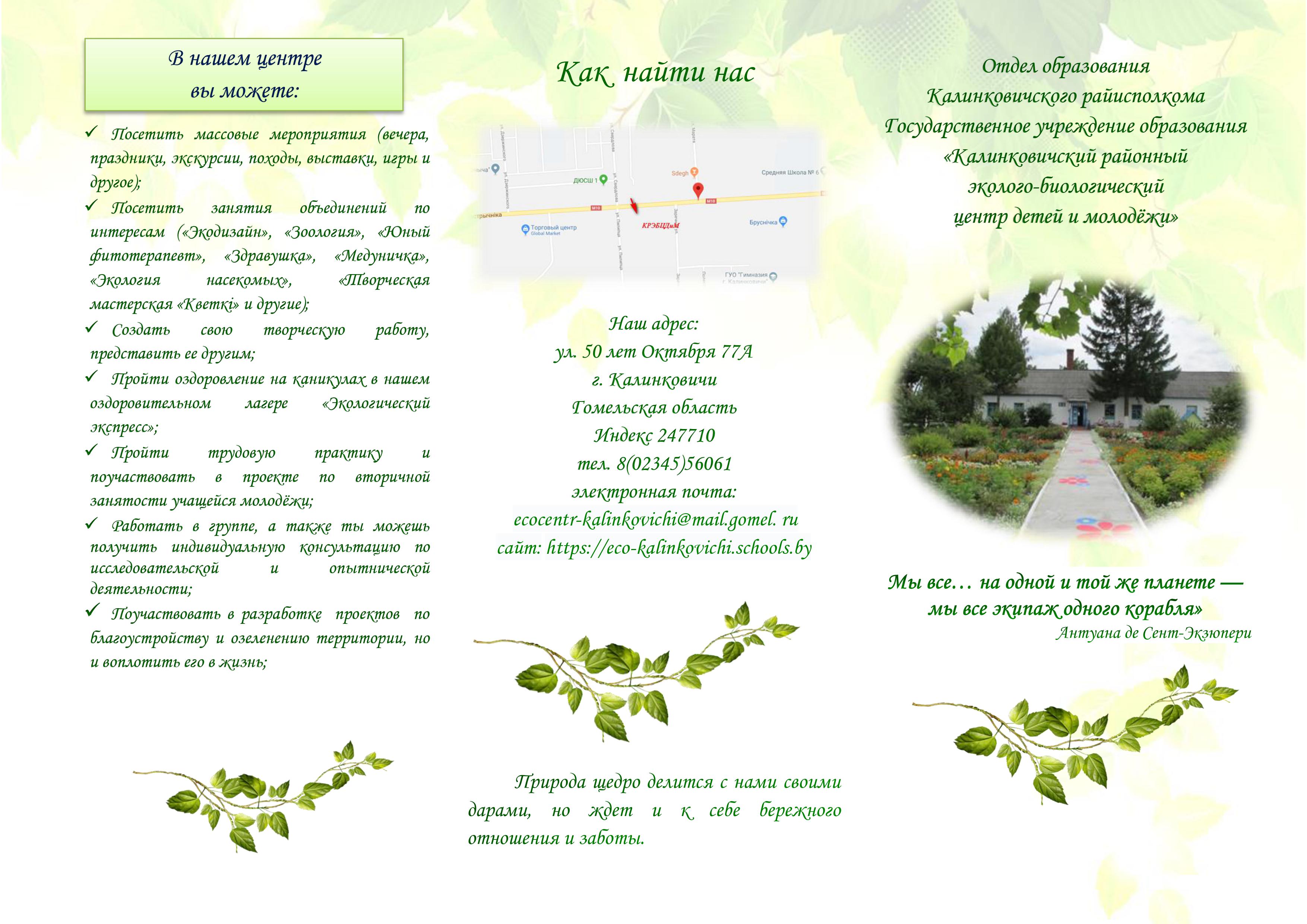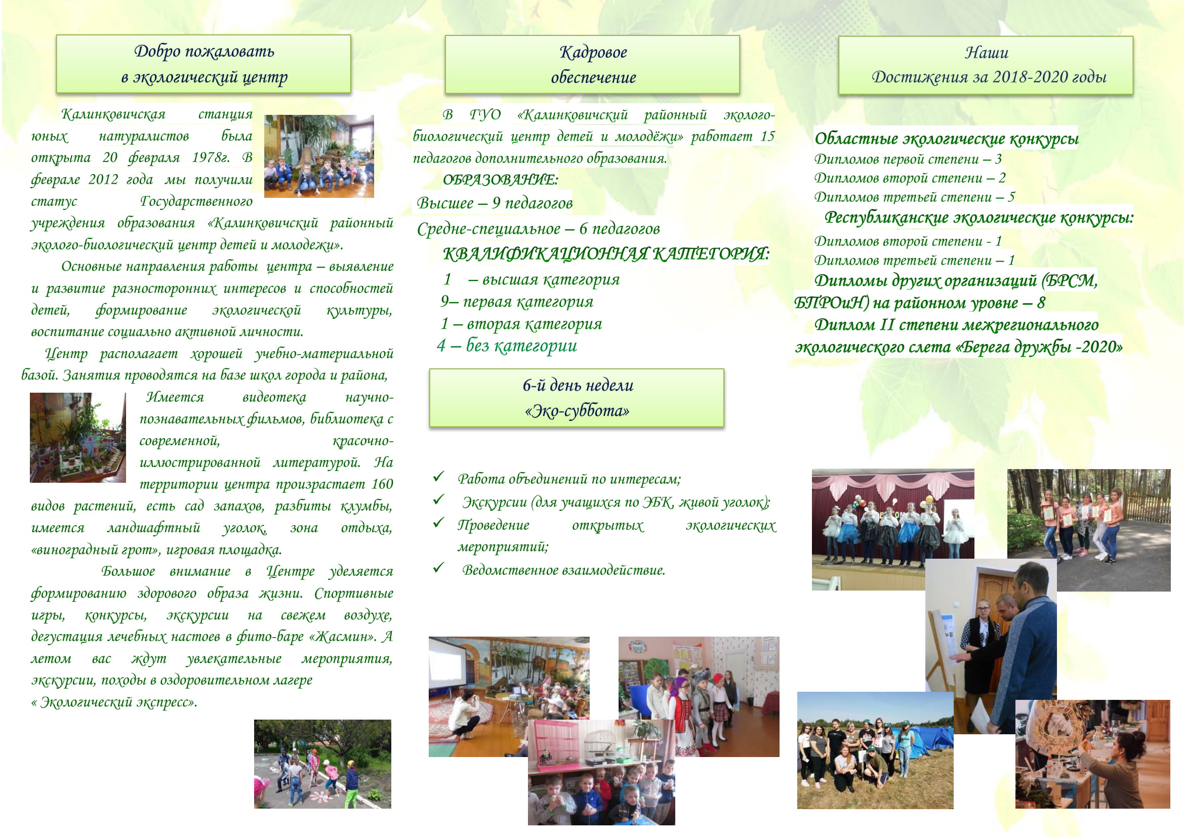 | Государственное учреждение образования «Калинковичский районный эколого-биологический центр детей и молодёжи» | ||