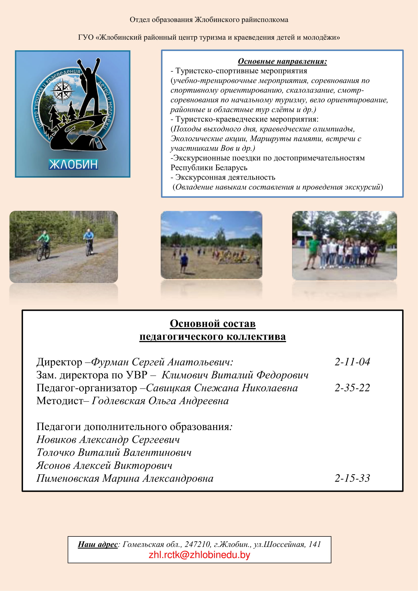 | Государственное учреждение образования «Жлобинский районный центр туризма и краеведения детей и молодежи» | ||